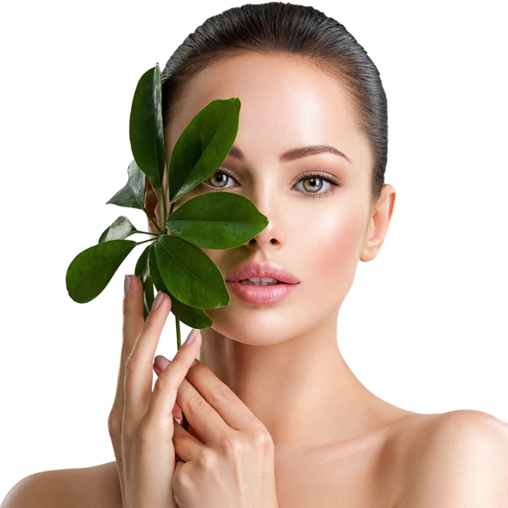 Woman with glowing skin and plant
